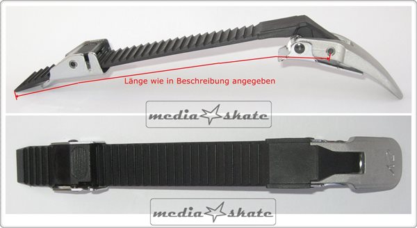 » Start » Inliner Parts » Schnallen / Peitschen » 1 Stück K2 Schnalle Buckle 17,5cm/Peitsche 2,2cm, silber + Schnap...